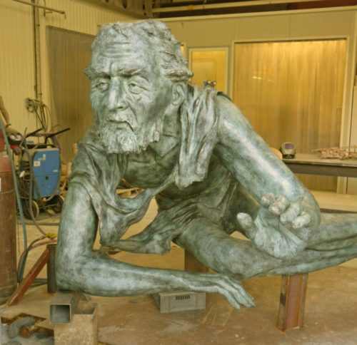 Le vieillard, le premier personnage à avoir été tiré en bronze, apparaît enfin en entier.